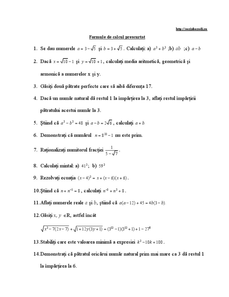 Cl A Vii A Formule De Calcul Prescurtat Relatii Si Deducere