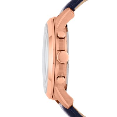 New Fossil Grant Rose Gold Navy Leather Chronograph Fs4835ie